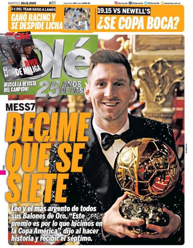 《国家报》标题:“梅西,金球的主人”。